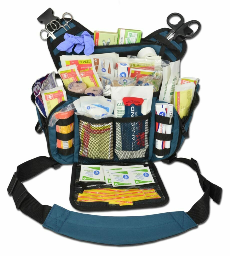 THE BAG – The new MB15 MedSling packs are versatile shoulder bags with a practical design and a tactical feel that can be used in multiple applications. Real world uses include military, law enforcement, EMS, special events first-aid, gun range, hiking, fishing or as a general day bag. The MB15 fits over one shoulder with an adjustable, ergonomic padded shoulder strap, which is also removable with two quick-release buckles. Each side flap, main cover and two side compartments include nylon webbing molle loops which provide multiple options for attaching gear and storing tools. The front three rows of molle loops are covered in hook & loop material for attaching name plates and custom patches. The main compartment opens to reveal four elastic mesh pouches, two zippered pockets, three pencil pouches and three elastic loops. Two dual-zippered side compartments will hold a standard water bottle, but also include mesh pouches and elastic loops so they can be customized to fit the users? needs. ***** THE KIT – The LXSMK-A kit includes the following supplies: Tweezer (1), Kelly Hemostat (1), Ammonia Ampules-Box of 10 (1), ¾”x3” Adhesive Bandage-box of 100 (1), 4”x4” Gauze Pad-Box of 50 (1), 2” Stretch Roll Gauze (2), 3” Stretch Roll Gauze (2), 4” Stretch Roll Gauze (2), ABD Pad 5”x9” (2), ABD Pad 8”x10” (2), 1” Cloth Medical Tape (1), Iodine Wipes (10), Alcohol Prep Pads (10), Triple Antibiotic Ointment (1), Trauma Shear (1), Instant Cold Pack (2), Oval Eye Pad (2), Triangle Bandage w/ Safety Pins (2), Eye Wash (1), Nitrile Gloves (1 pair), Finger Splint (1), Bandage Shear (1), Sting and Bite Relief Pads (10), Glucose (1), Burn Gel Dressing (2), First Aid Pocket Guide (1)